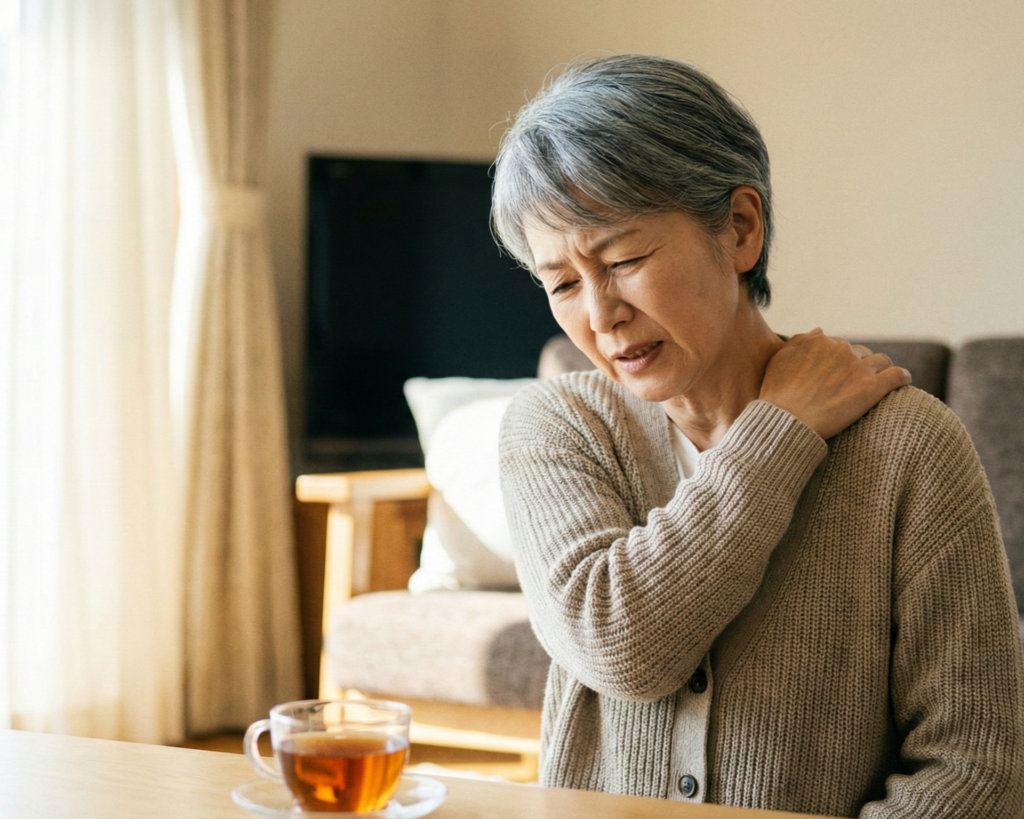 ある日突然、肩に激痛が走ったり、腕が上がらなくなったりする「四十肩・五十肩」。正式名称を肩関節周囲炎と呼びます。 加齢に伴い肩の関節をスムーズに動かす組織(腱板や滑液包)に炎症が起き、放置すると肩の動きが極端に制限される「フローズンショルダー(凍結肩)」の状態になってしまいます。