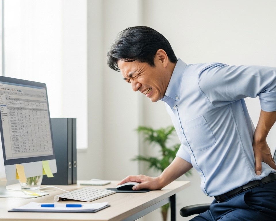 - 前かがみになったり、椅子に座り続けたりするのがつらい
