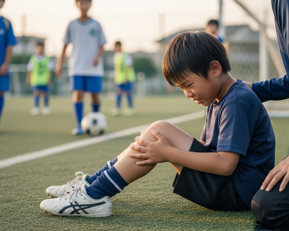 成長期のスポーツ選手に多く見られる、膝のお皿の下(脛骨粗面)の痛み。それがオスグッド・シュラッター病です。 ジャンプ動作やダッシュ、ボールを蹴る動作を繰り返すことで、未発達な脛骨(すねの骨)が太ももの筋肉に引っ張られ、炎症や骨の隆起を引き起こします。